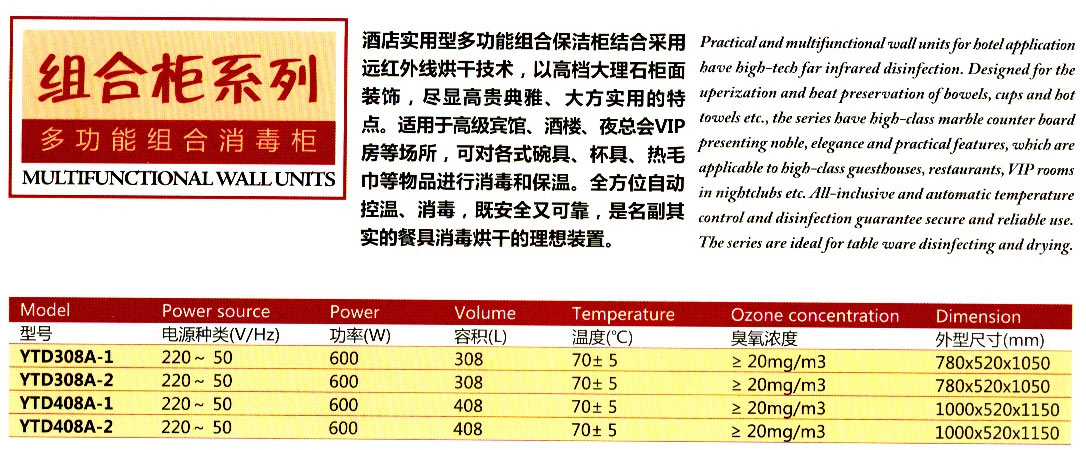 双门消毒柜(玻璃门)220V~50HZ,1820W 容积900L,温度大于70度,臭氧浓度20毫克每立方.外形尺寸MM1200*640*1695